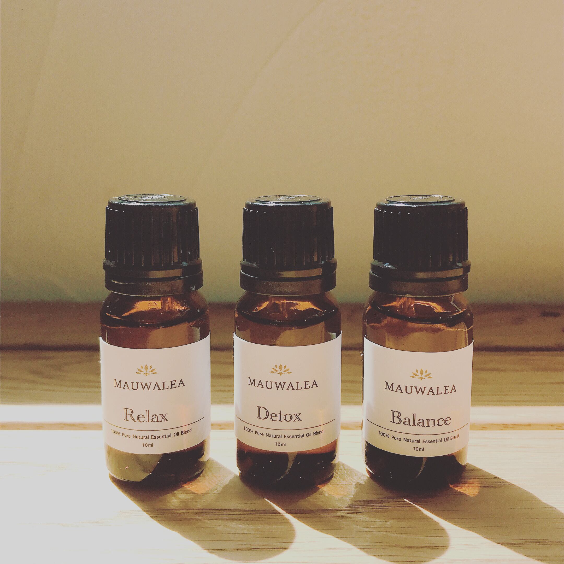 ブレンドエッセンシャルオイル Relax・Detox・Balance の3種セット。